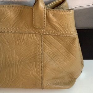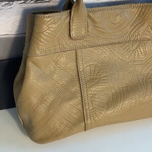 Franco Sarto Tan Embossed Tooled Leather Small Satchel Handbag