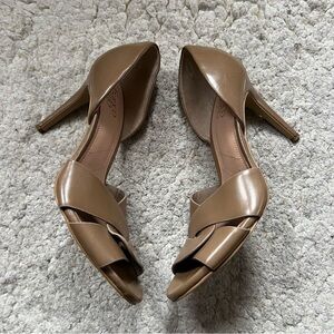 Franco Sarto: Tan Faux Leather Criss Cross Peep Toe Dressy High Heels Size 9M