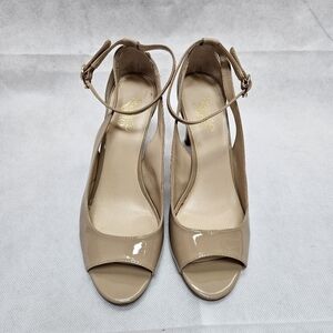 Franco Sarto Tan Paten 3.5in Ankle Strap Open Toe Heels Size 9