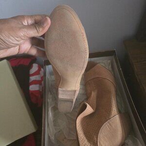 Never worn Franco Sarto ankle booties in a soft tan/nude shade. Perforated leather design with side zipper for easy fit. Low stacked block heel (comfortable for all-day wear). Comes in the original box (see photos). Soles show no wear (as pictured)