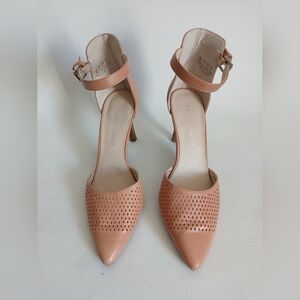 Chic tan heels with perforated design. Ankle strap for secure fit. Perfect for stylish outings. Worn once excellent condition.