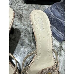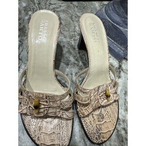 Franco Sarto Tan Snakeskin Print Strappy Sandals with Kitten Heel Size 9