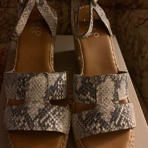 NWB. So gorgeous. I feel so sexy when I wear mine and they are comfortable!!! Would not recommend for really wide feet. Goes with a lot, shorts, pants, dresses and colors too.