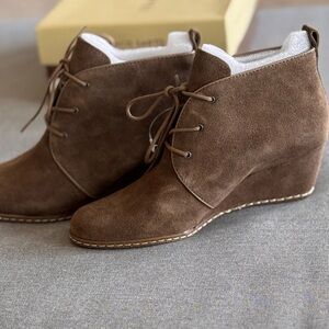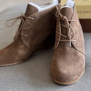 Franco Sarto Taupe Suede Laced Women's Wedge Ankle Boots