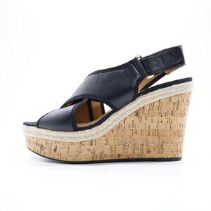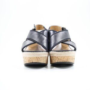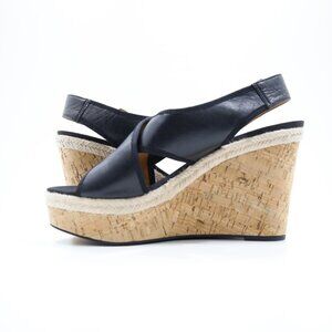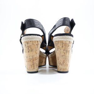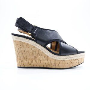 Franco Sarto Taylor Black Leather 4" Wedge Heel Platform Sandals - 8.5