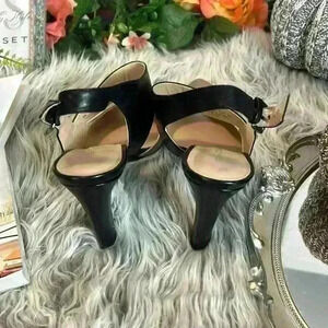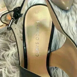 Comfortable and classy Franco Sarto Trish black & tan leather sling back heels with pointed closed toe. This is an all leather upper pump with man-made balance and sole.Good condition, small scuff on heel and edge of shoe noted in picture
