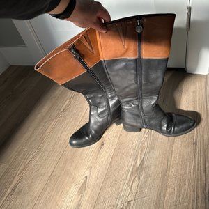 Franco Sarto Two-Tone Riding Boot Black Brown Zipper Size 7.5