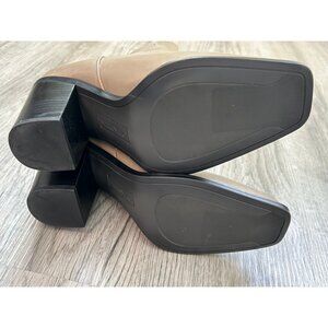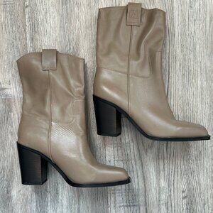 Franco Sarto Valor Taupe Leather Block Heel Ankle Boots Square Toe Size 10M