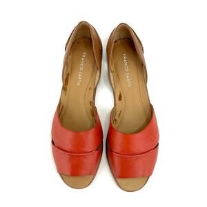 🐈 Franco Sarto Vivace Flat Sandal Sz 9.5 Orange & Tan Leather Open Toe Padded Footbed New.