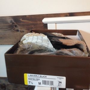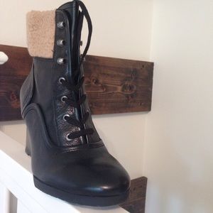 New In Box Franco Sarto Lace up Wedge Leather Boots with Faux Shearling Top - Black