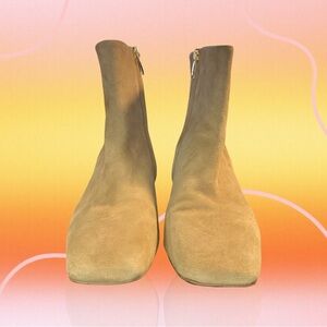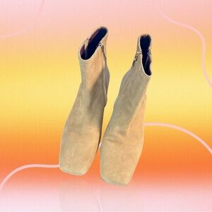 Franco Sarto ‘Waxtona’ Beige / Nude Genuine Suede Block Heel Ankle Boots Size 9