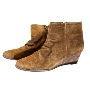 Franco Sarto Wedge Booties Womens 9.5 Chestnut Brown Suede Leather Fall Shoe