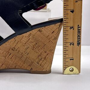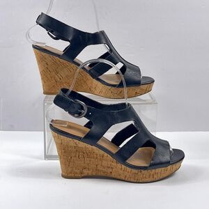 Franco Sarto Wedge Sandals Womens Size 6.5 Black Colletta Cork Leather Slingback