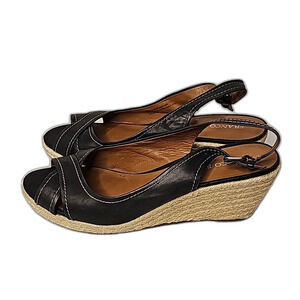 Franco Sarto Wedges Black Leather White Stitching Size 10