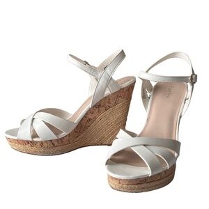 Franco Sarto White "Astro" Raffia Espadrille Wedge Heel Sandal Size 10 With Box. Good pre-loved condition.