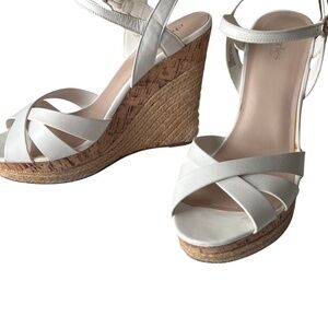 Franco Sarto White "Astro" Raffia Espadrille Wedge Heel Sandal Size 10 With Box.