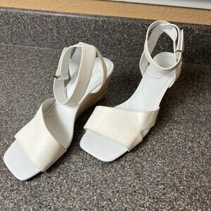 Franco Sarto White Leather Wedge Sandals Women's Size 10 M Open Toe Ankle Strap