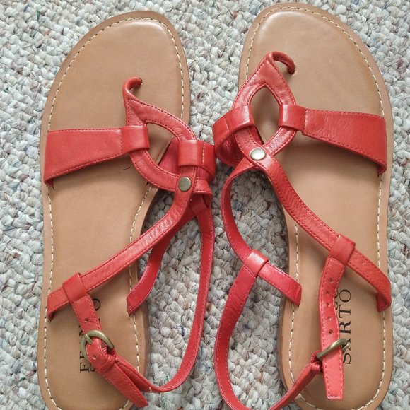 Flats sandals with straps. Padded foot bed for comfort underneath and flat heel for slight elevation.