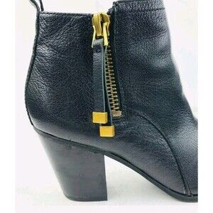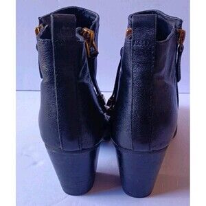 Franco Sarto Women Ankle Bootie Size 9 Diana Black Leather Gold Zip Tassel