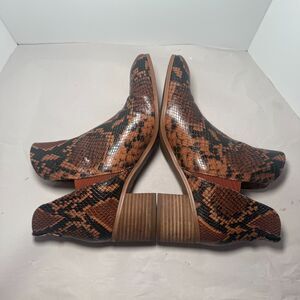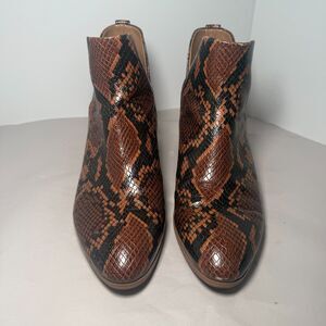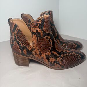 Franco Sarto Women Roar Snake Embossed Notched Bootie Cognac Brown Size 9