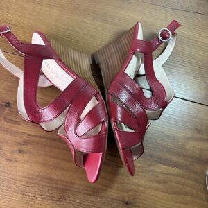 Franco Sarto Womens 6.5 Red Wedge Galia Heels Sandals Strappy