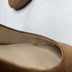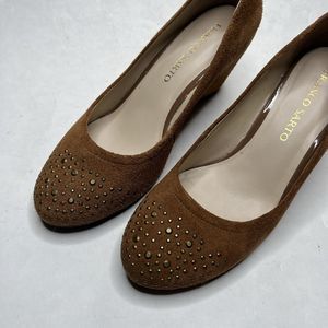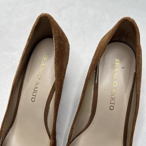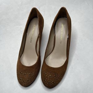 Franco Sarto Womens 8 Desert Camel Suede Zinc Embellished Suede Wedge Tan Brown