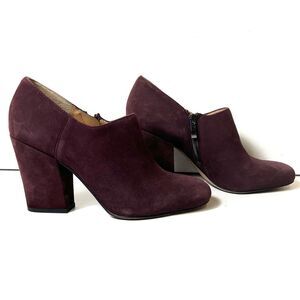 Franco Sarto Women's Size 8.5M Burgundy Suede Chunky Heels Zip Up Comfort Classic Pump