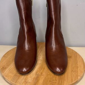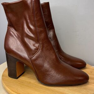 Franco Sarto Women's A-Ponte Almond Toe Side Zip Block Heeled Boots Brown Sz 11M