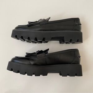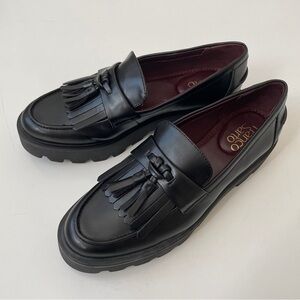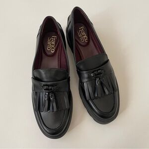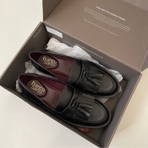 Franco Sarto Women’s Bersa Slip On Loafer in Black Leather with Tassel, Size 6.5