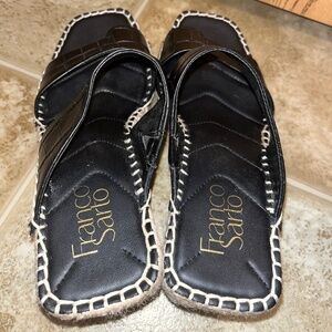Franco Sarto Women’s Black Leather Espadrille Wedge Summer Sandals Sz-6
