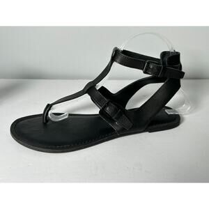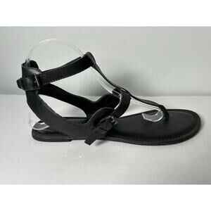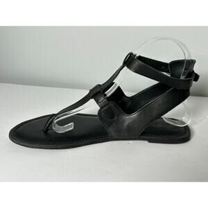 Franco Sarto Women's Black Leather Flat Thong Ankle Ring T-Strap Sandal Size 10