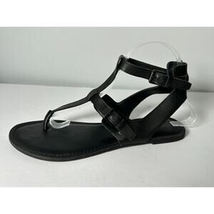 Franco Sarto Women's Black Leather Flat Thong Ankle Ring T-Strap Sandal Size 10