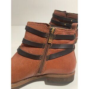 Franco Sarto Womens Brown Ankle Boots With Black Strap & Gold Zipper Size 6M