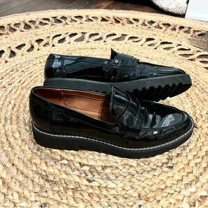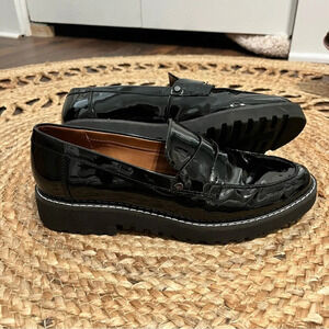 Franco Sarto Women’s Cassandra Chunky Black Patent Penny Loafer Sz 8.5M