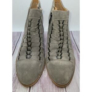 Franco Sarto Women's Dimona Boot Size 8 Block Heel Gray Suede Woven Slits.