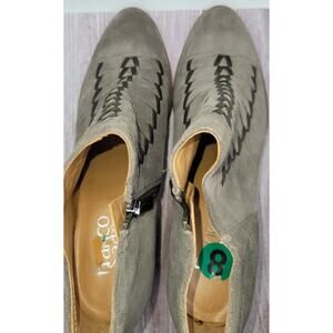 Franco Sarto Women's Dimona Boot Size 8 Block Heel Gray Suede Woven Slits