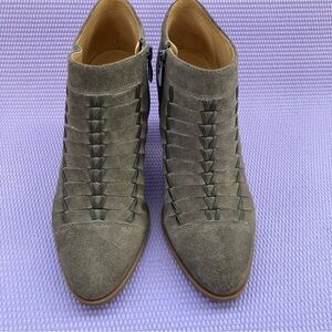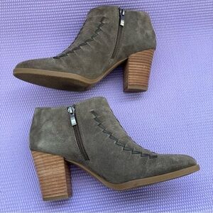 Franco Sarto Women's Dimona Boot Size 8.5 Block Heel Gray Suede Woven