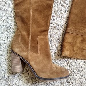Franco Sarto Womens Elnora Cognac Suede Over The Knee OTK Fringe Boots Sz 9,5