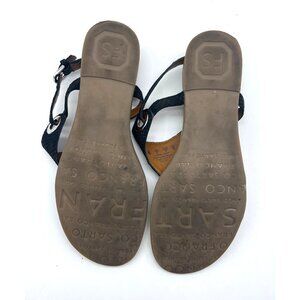 Franco Sarto Women's Goldy Embossed T-strap Sandals Black Size 7