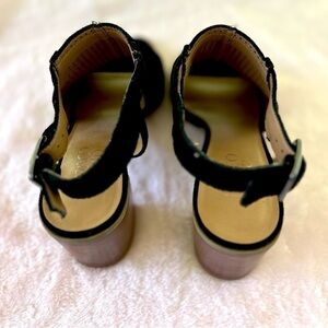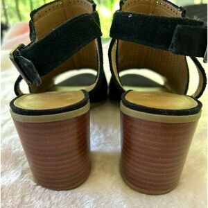 Franco Sarto Harlet2 black suede slingback block heel sandals.
