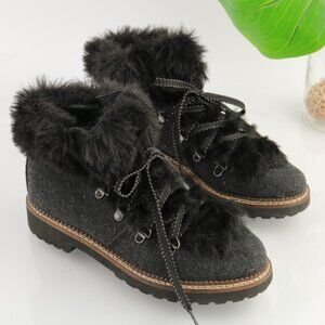 Franco Sarto Womens Harlin Boot Size 7.5 Gray Wool Furry Lace Up Bootie Lug Sole
