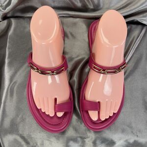 Franco Sarto Womens Jade Magenta Hot Pink Gold Flat Pool Slides Shoes Size 7M