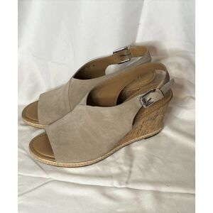 Franco Sarto Women's Julien Wedge Sandal Beige Suede Espadrille Size 9M