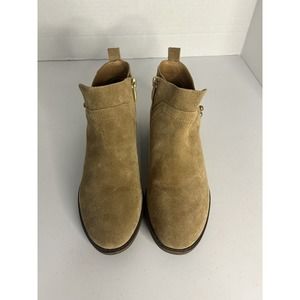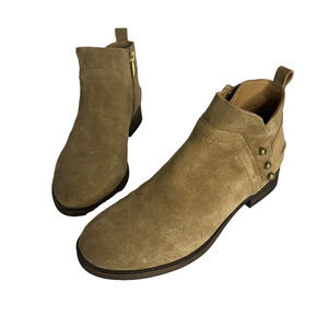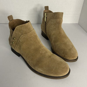 Franco Sarto Women's Kelton Tan Suede Studded Side Zip Gold Ankle Boot Size 6.5