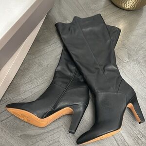 Walk tall. Consider this knee-high, wide calf boot a new favorite. Faux leather partially made from recycled materials. Eco-conscious linings with soft + sustainable comfort. Side zip for easy on/off. Pointed toe. 15.94 inch shaft height, 3.5 inch heel.