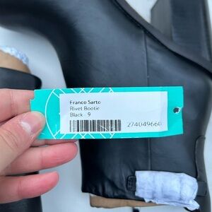 Franco Sarto Womens Rivet Leather Block Heel Booties black size 9