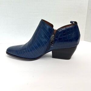 Franco Sarto Women’s Side Zipper-Up Navy Crocodile Texture Ankle Boots