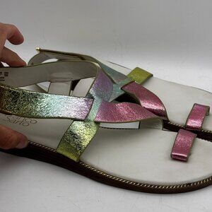 Franco Sarto Womens Size 11 Metallic Rainbow Thong Sandals Flat Comfort Summer