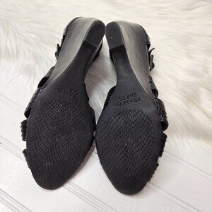 Franco Sarto Women's Size 7 M Black Leather Wedge Sandals Heels Peep Toe Buckle