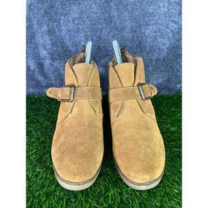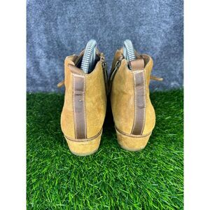 Franco Sarto Women’s Suede Ankle Boots Size 6.5 Tan Wedge Buckle Zip Booties